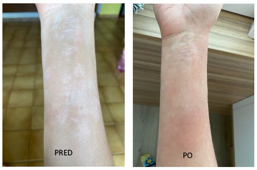 Vitix gel 10 min pred svietenim. Mimo svietenia UVB lampou Dermalight, protopic rano a večer. Užívam Vitix vitamíny.